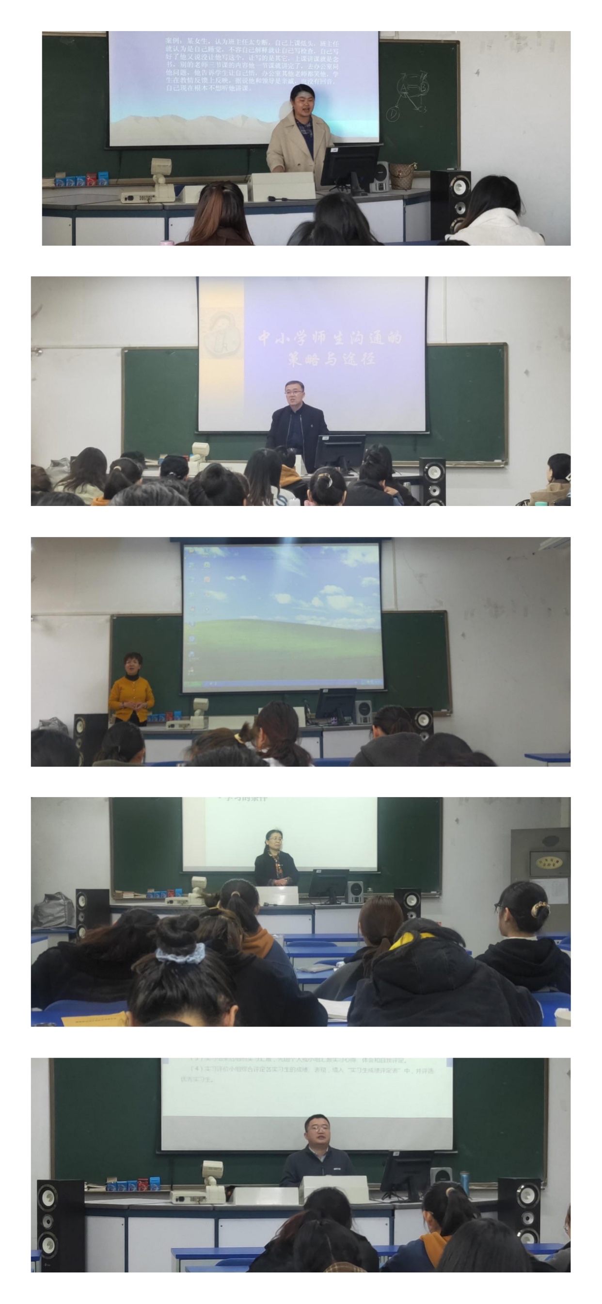 本次实习培训共邀请八位老师进行针对性指导。卫晓婷老师通过实例讲解了中员工常见的心理健康问题及辅导方法,针对常见的心理健康问题,结合自身经验传授解决方法,引导员工明白身为一名心理健康老师要学会调整自身状态,以最好的精神面貌面对员工;张潮老师就中小员工的心理发展特点和发展规律进行了详细讲解;韩琴老师着重讲解了常见的教育研究方法;尹忠泽老师主要讲授了团体心理辅导理论和操作技术,引导员工将团体辅导知识运用到实际教学过程中;刘丽萍老师着重讲解中小学课堂教学管理中存在的问题及其应对方法;王志刚老师重点讲解中小学师生沟通的策略和途径,讲解内容生动有趣,同时针对一些实际性的问题与同学们进行了深入的探讨和交流;冯喜珍老师从学习的实质、学习的类型、学习的过程以及学习的条件这四个方面进行了讲解,引导同学们学会如何进行教学设计。仝文老师就心理健康教育实习进行经验上的评价与总结,明确实习内容和任务,让同学们为将来的实习工作积累经验,确保将来的实习工作能够顺利的进行与开展。