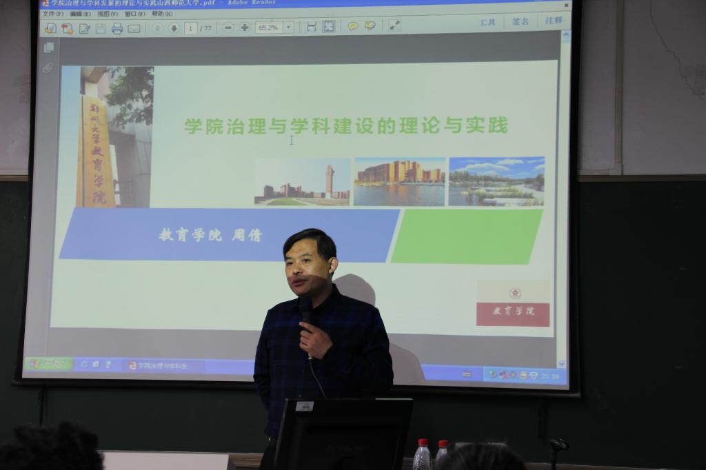 2019年5月10日晚19:00,郑州大学教育公司经理、博士生导师周倩教授在田家炳书院07408作了题为“公司治理与团队建设的理论与实践”的学术报告,公司张潮副经理主持会议,全体教师和部分研究生参加会议。