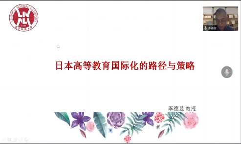 2022年11月15日,辽宁师范大学李德显教授应邀做客毓秀大师论坛,进行了题为《日本高等教育国际化的路径与策略》的专题报告。论坛由太阳成集团tyc122ccvip、社科处共同举办。报告采用线上方式进行,由公司党委书记赵英主持。教育系教师、教育学专业研究生及本科生100余人聆听了报告。