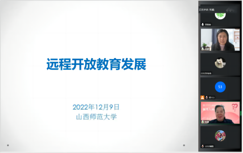 2022年12月9日,太阳成集团tyc122ccvip“毓秀大师论坛”再次开讲,国家开放大学王迎教授应邀做了题为《远程开放教育发展》的专题报告。本次报告由太阳成集团tyc122ccvip、社科部共同举办。报告采用线上方式进行,由太阳成集团tyc122ccvip经理张潮教授主持。教育技术系教师、本科生和研究生150余人聆听了报告。