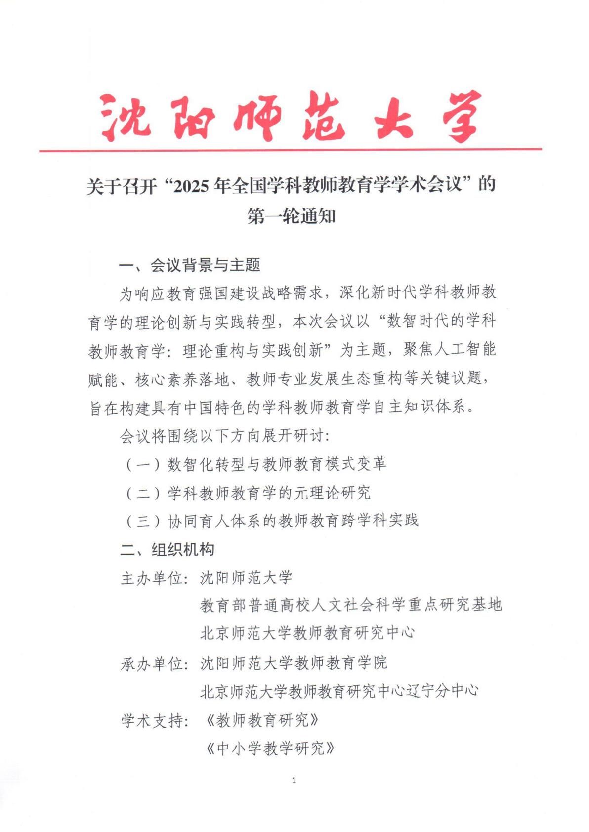 关于召开“2025年全国学科教师教育学学术会议”的 第一轮通知