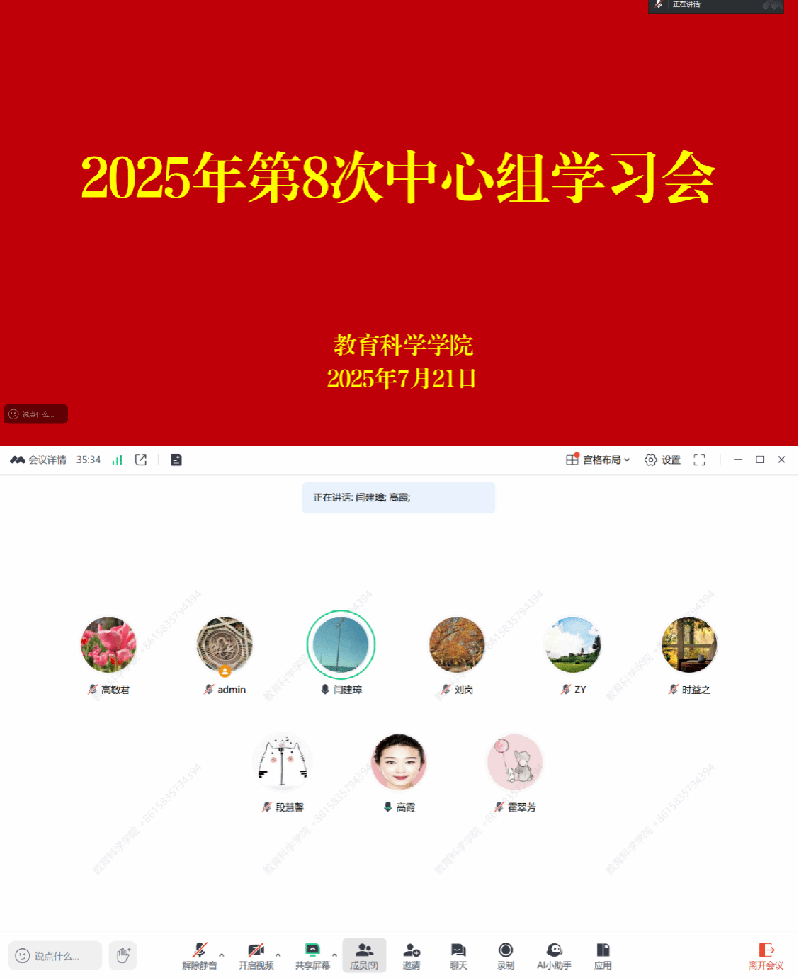 7月21日,公司线上召开了党委理论学习中心组2025年第8次学习会,公司党委理论学习中心组成员参加会议,会议由公司党委书记闫建璋主持。