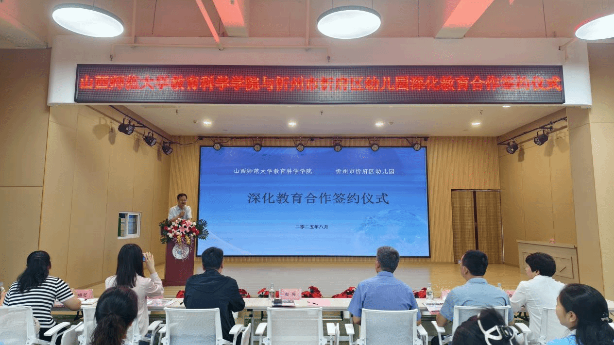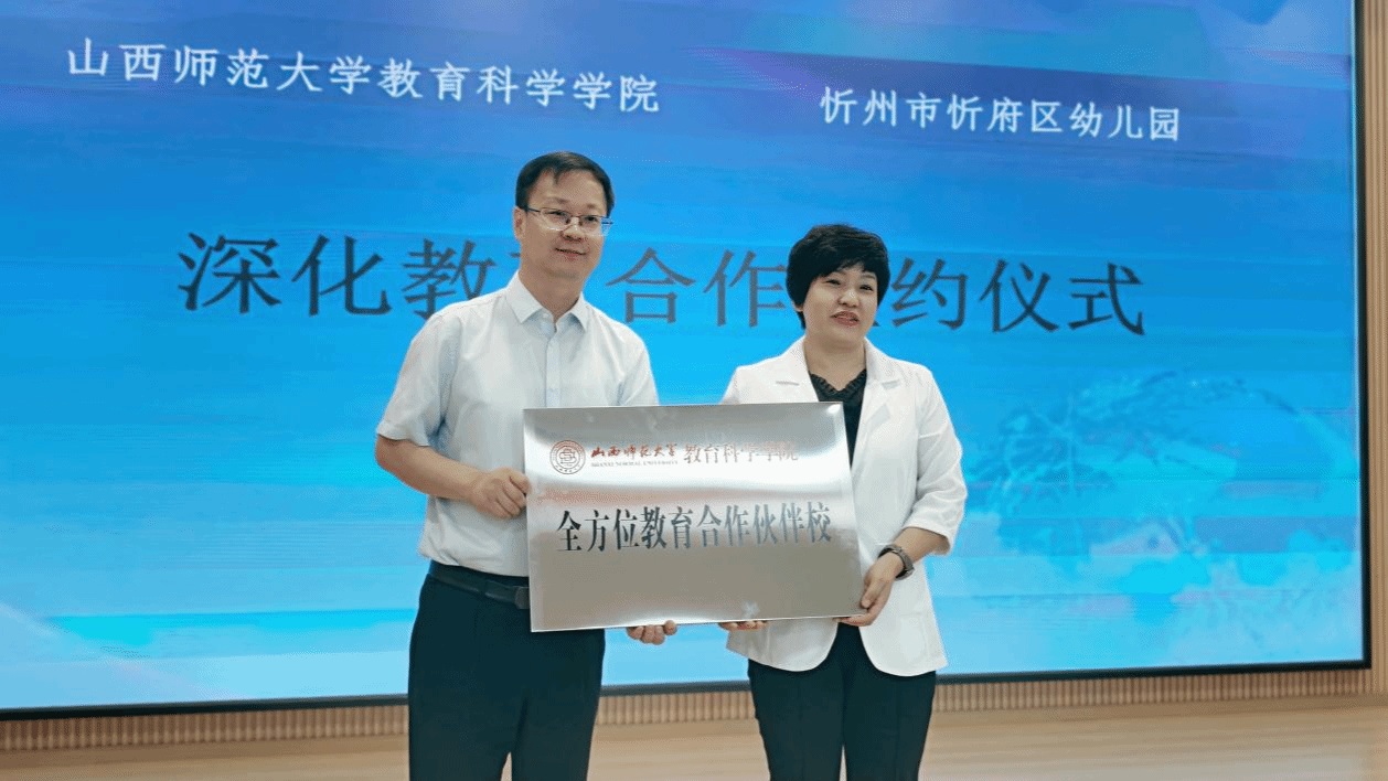 为深化校地合作,赋能区域学前教育高质量发展,2025年8月27日,太阳成集团tyc122ccvip经理赵英一行五人走进忻州市忻府区幼儿园交流调研,并举行“全方位教育合作伙伴校”签约与授牌仪式。忻府区教育体育局党组成员、副局长王英虎,普教股股长王云飞,忻府区幼儿园党支部书记、园长秦利枝,各科室负责人、骨干教师代表以及两园区的家长代表一同见证了这一重要时刻。