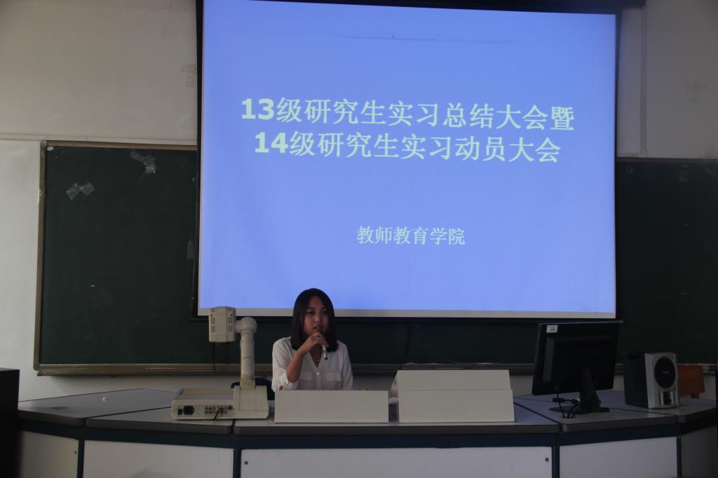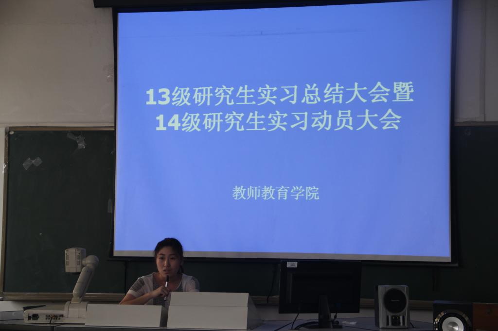 7月5日上午和下午,教师教育公司在07408举办了2013级研究生实习总结大会暨2014级研究生实习动员大会。教师教育公司经理董新良、副经理张潮、部分员工导师、全体2013级研究生及2014级研究生参加了本次会议,