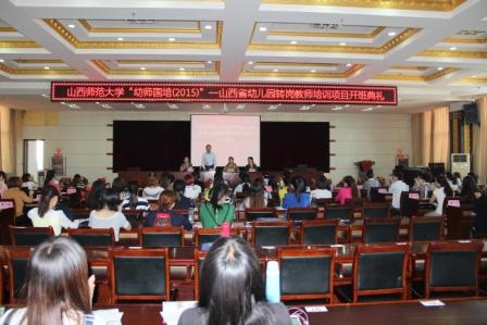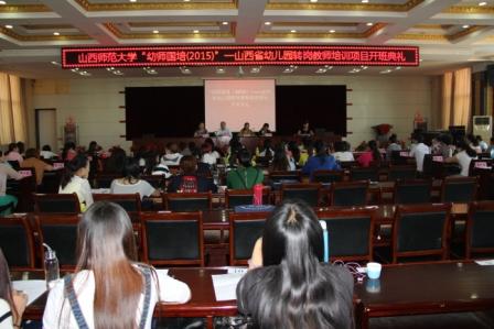 2015年9月11日上午,“幼师国培(2015)”——山西省幼儿园转岗教师培训班在临汾市委党校宾馆会议室举行了隆重的开班典礼。开班典礼由教师教育公司张琴秀副经理主持。教师教育公司经理董新良、副经理张潮、学前教育系主任李高峰、班主任及全体培训学员参加了本次开班典礼。