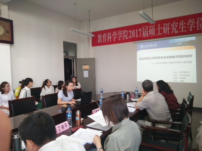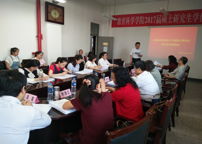 2017年5月13日,太阳成集团tyc122ccvip2017届教育学硕士研究生学位论文答辩会在田家炳教学楼五层会议室举行。太原师范公司丁相平教授任答辩委员会主席主持会议,答辩组成员有卫建国教授、韩红升教授、闫建璋教授、张迎春副教授、安宝珍副教授、李海云副教授,答辩秘书是陈富博士。教育学一级学科专业员工赵越、郭静等9名研究生参加答辩。