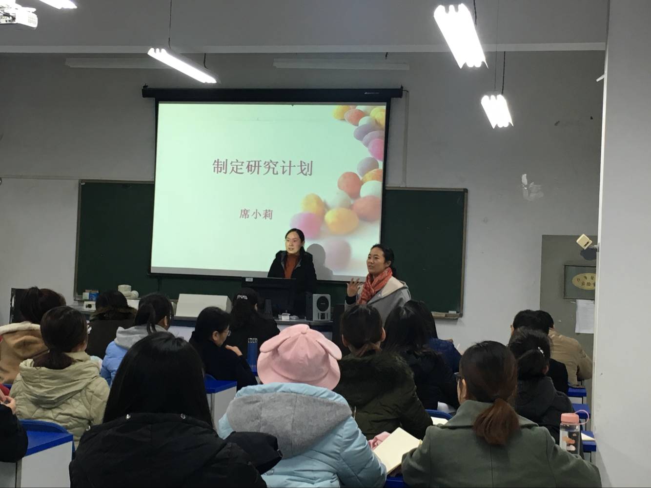 席小莉老师以《如何撰写研究报告中――修改文献综述以及整理研究计划》这一单元为主题,通过小组展示、员工提问、老师点评和交流讨论等教学环节进行了公开课。课堂上由小组同学分享了关于“同胞关系对二宝社会性发展的影响”这一选题的文献综述及研究计划,然后由同学提出自己对该汇报的疑惑及存在的问题,席老师一一解答,并带领同学们仔细阅读分析了本组的研究计划。