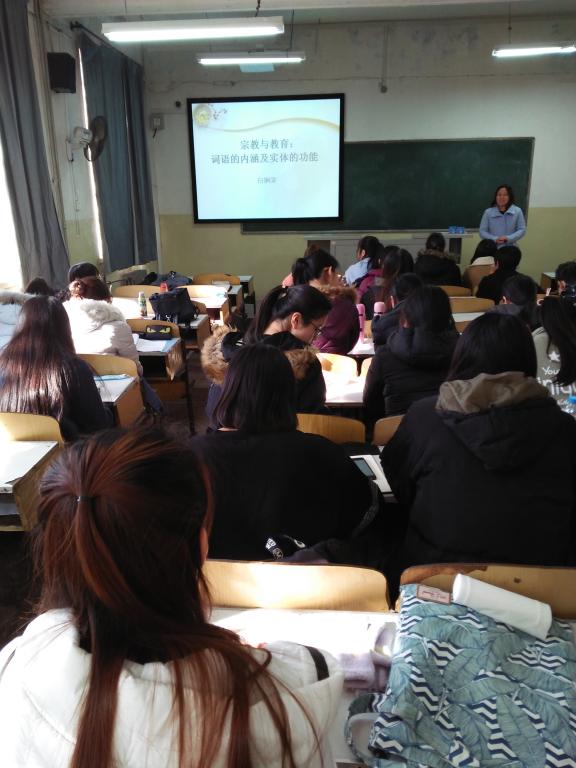 随后,白老师阐述了在中国古代文献中,“宗教”一词的含义有以下几种:1.官职,专事皇族子弟的教育;2.佛教之教理;3.泛指所有宗教信仰。由于中国古代思想的争鸣与发展,“宗教”一词的外延逐渐扩展,也随西方宗教学兴起及其对中国学术界之影响,它不仅可以指佛教,而且可以指道教、基督教、伊斯兰教,甚至包括被视为“邪异”组织等文化现象。由此可见,“宗教”不是一个外来词,其蕴意时有不同,不管作为“从事教育、教化的人”,还是普遍指代佛教、道教,乃至基督教,甚至称儒家经书,都蕴含“教育、教化”之意。