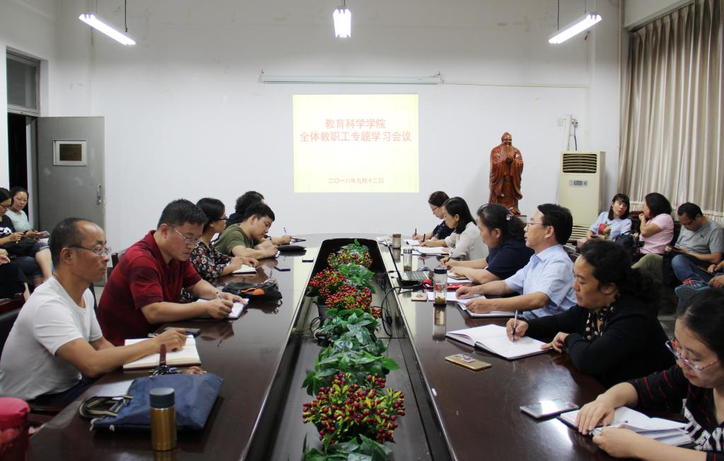 9月12日晚,公司在07509召开全体教职工专题学习会议,深入学习习近平总书记在全国教育大会上的讲话精神和新时代全国高等公司本科教育工作会议精神。院领导吴文国、张潮、任小玲、韩琴以及全体在校教职工参加会议。会议由公司党委书记吴文国主持。