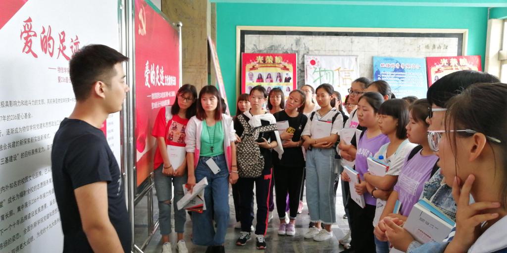 活动由物信公司的同学担任讲解员,他们主要向大一新生介绍了公司“236”爱心社的成立过程以及这十年来爱心社所举办的活动和收到的荣誉。同学们安静有序的聆听讲解员的讲解,并认真的参观了展馆的每一个板块。