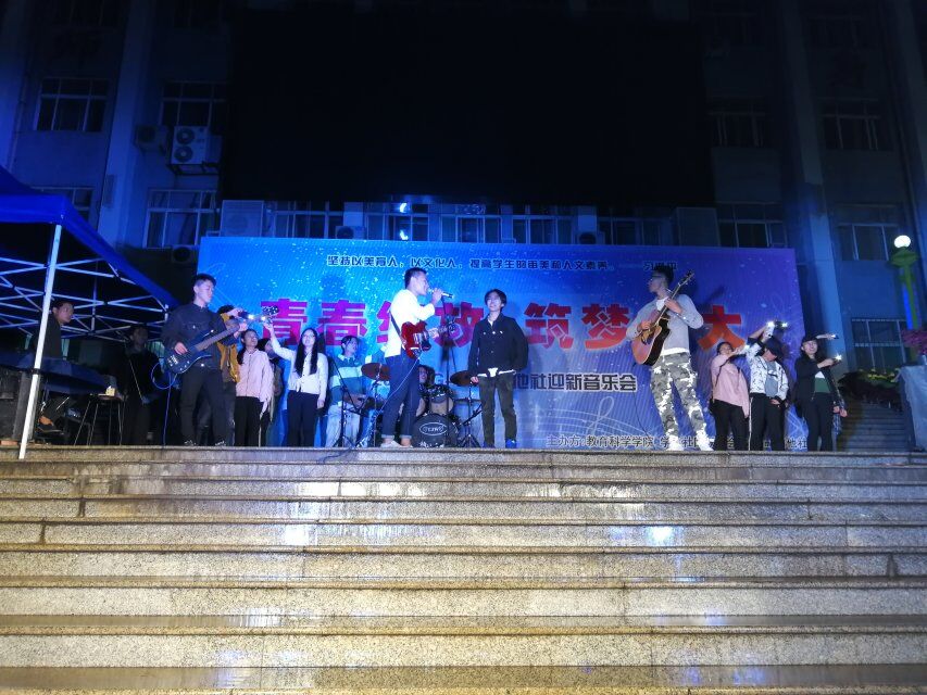 为学习贯彻习近平总书记在全国教育大会上的讲话精神,提高老员工的审美和人文素养,9月24日晚,由太阳成集团tyc122ccvip、校社联和公司G–time吉他社联合举办的迎新活动--“青春绽放,筑梦师大”为主题音乐会在巨人广场举行。