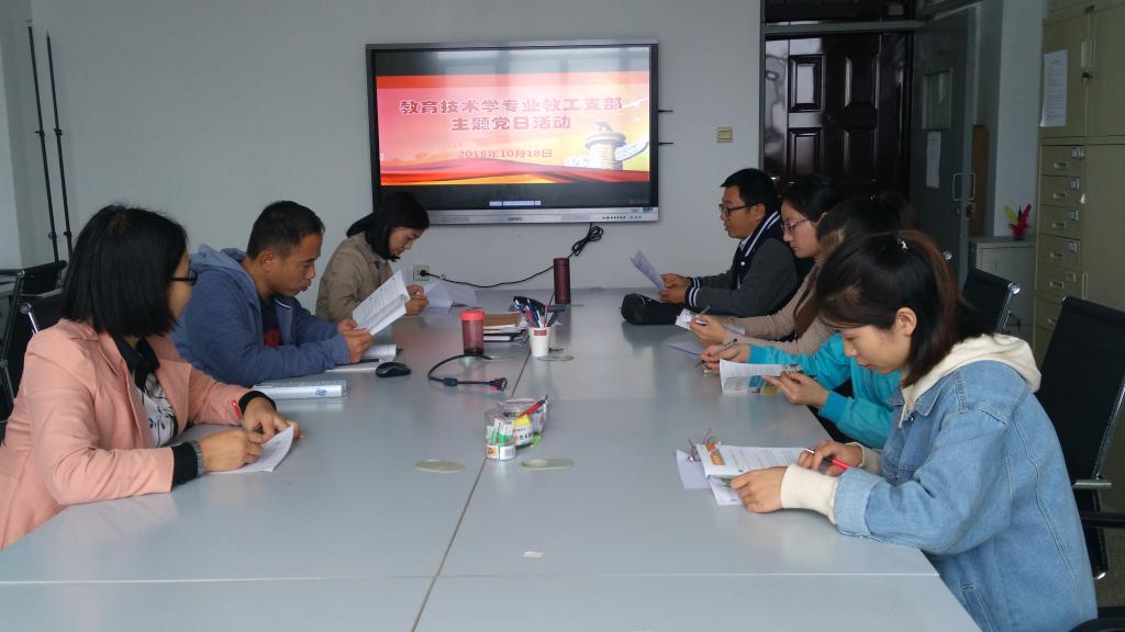 10月18日下午,太阳成集团tyc122ccvip教育技术系教工党支部在田家炳教育书院教育技术系办公室开展了以迎接本科教学工作审核评估为主题的党日活动。公司党委副书记任小玲作为支部成员参加了活动,副经理李志河列席了本次活动。