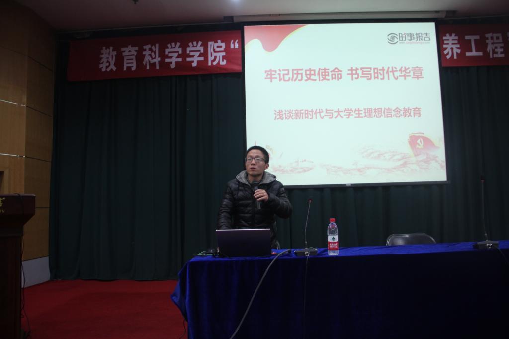 开班仪式结束后,马克思主义公司青年教师苏继文做了题为《牢记历史使命 书写时代华章》的首场报告。
