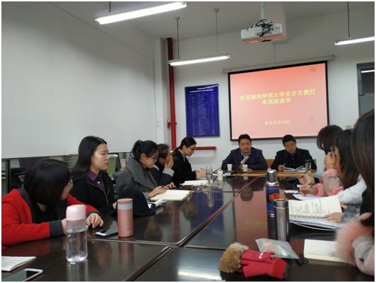11月16日上午,陕西师范大学教育公司副经理、中国高等教育学会高等教育学专业委员会常务理事吴合文教授在田家炳书院07501室与高等教育学专业的研究生座谈,教师教育公司经理闫建璋教授主持了座谈会。