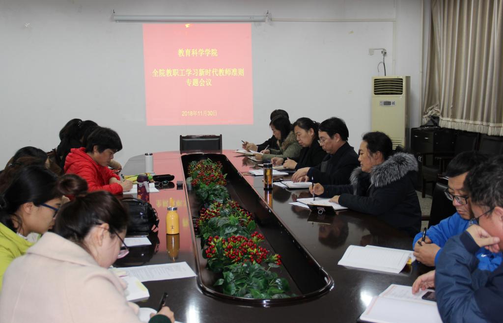 11月30日下午,公司在07509召开全体教职工专题学习会议,深入学习新时代教师职业行为准则。全体院领导以及全院教师参加会议。会议由公司党委书记吴文国主持。