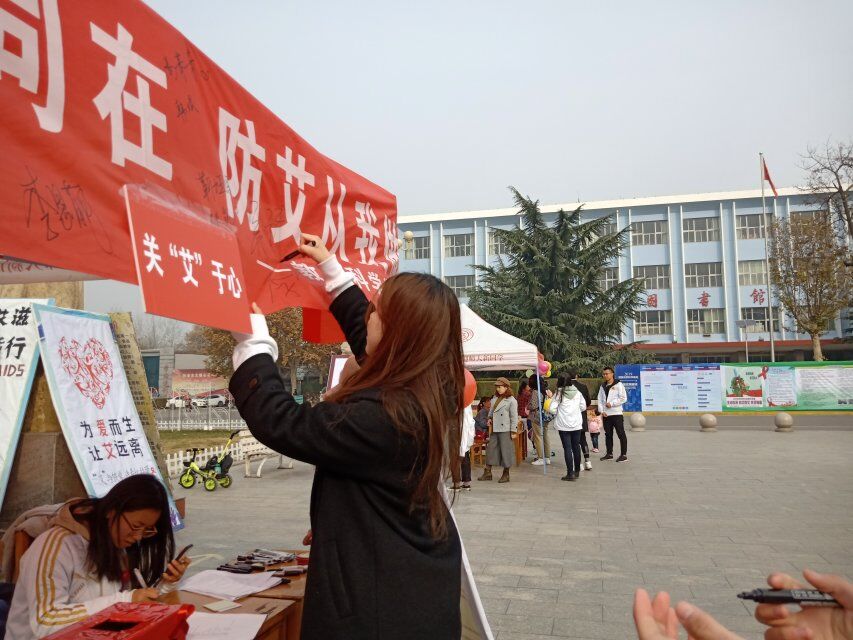 活动现场,工作人员展出以“为爱而生,让爱远离”为主题的展板,向同学们宣传有关知识,组织前来询问的同学在“爱与生命同在,防艾从我做起”的横幅上进行签字,呼吁大家行动起来,携手共同遏制艾滋。现场活动分为有奖答题、印手印与发放红丝带三个部分,活动过程中,同学们在抽签盒中抽取关于艾滋病的题目,参与到答题的过程中。