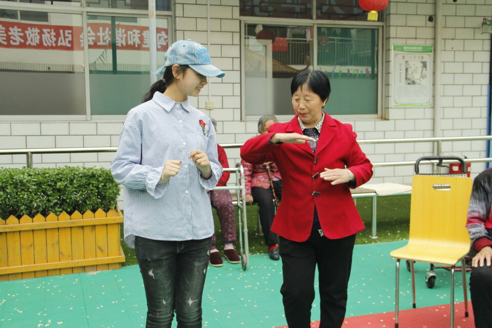 与老人互动