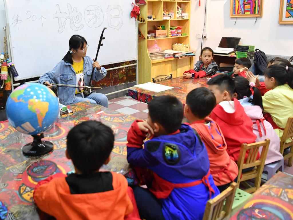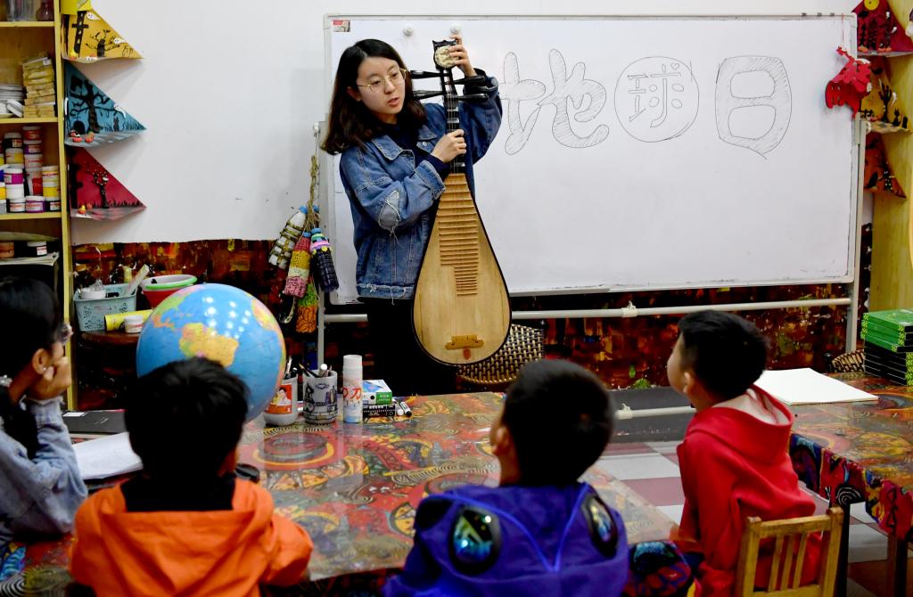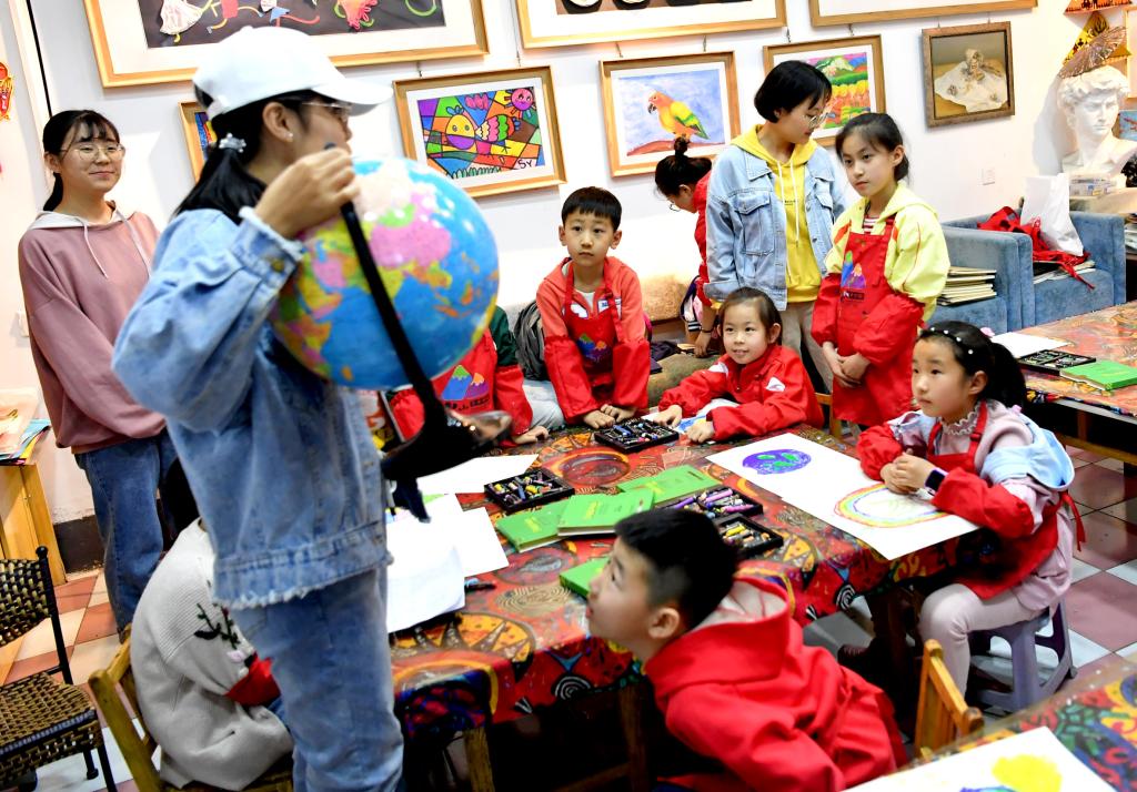 活动分为“演奏”、“美术”和“讲解小知识”三个环节。八音乐团的两位同学为小朋友们带来中国传统乐器琵琶以及二胡的演奏,在美术环节中,小朋友们发挥自己的特长,动用自己丰富的想象力,用画笔画出了自己心目中对地球的美好印象,最后工作人员讲述了关于地球日的各种知识,在提问时小朋友们积极回答,现场气氛十分活跃。