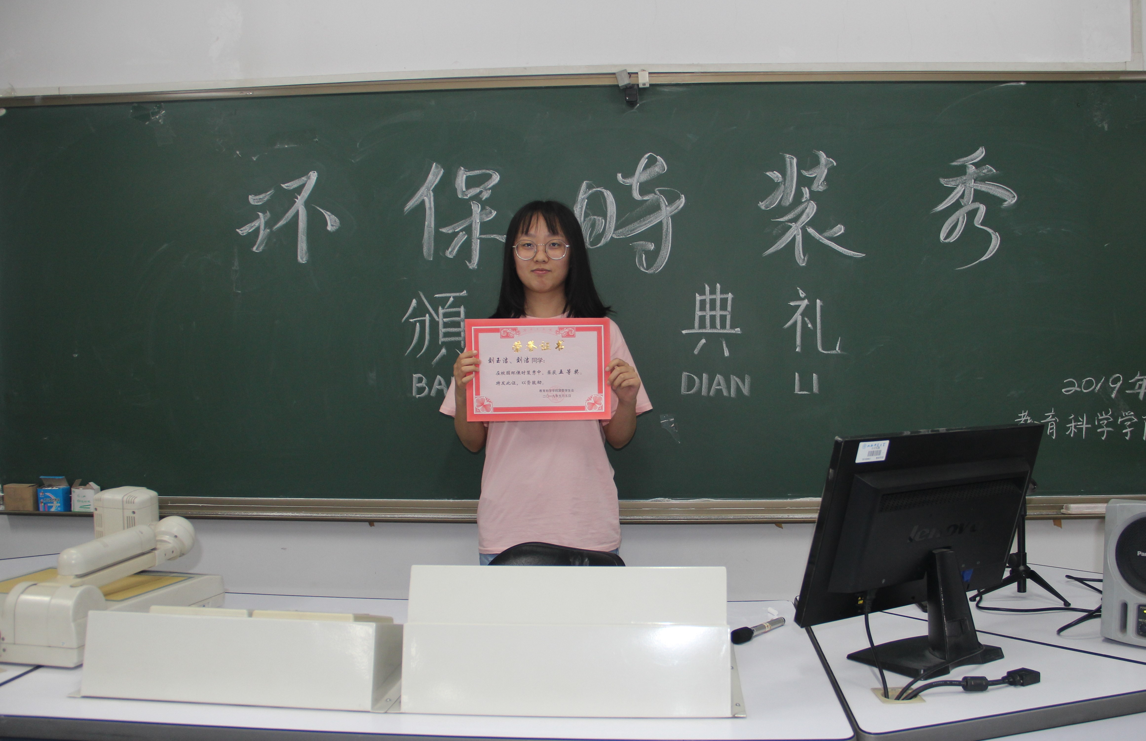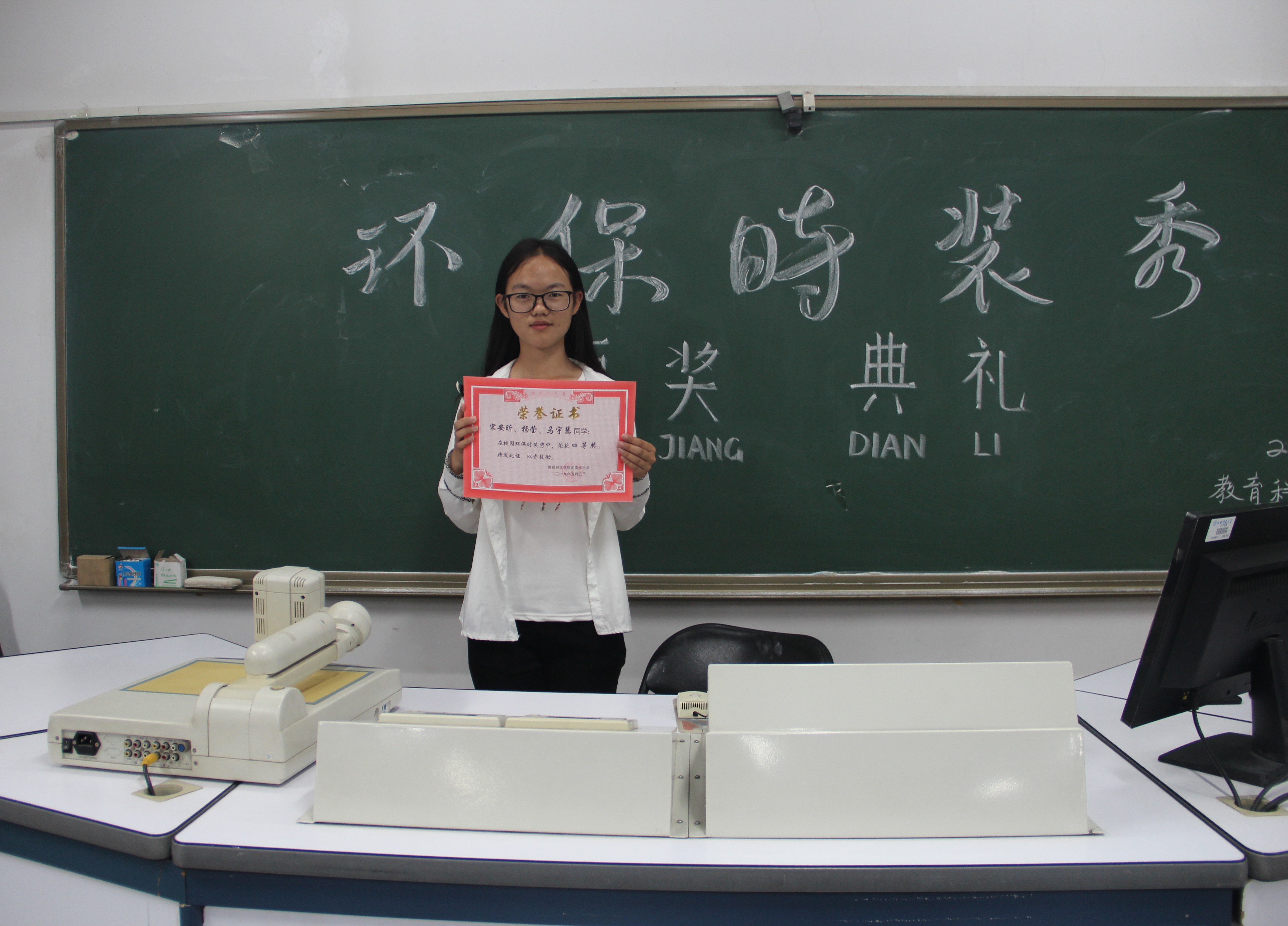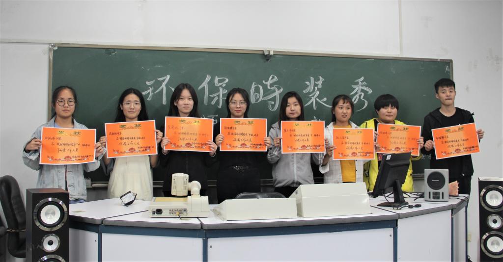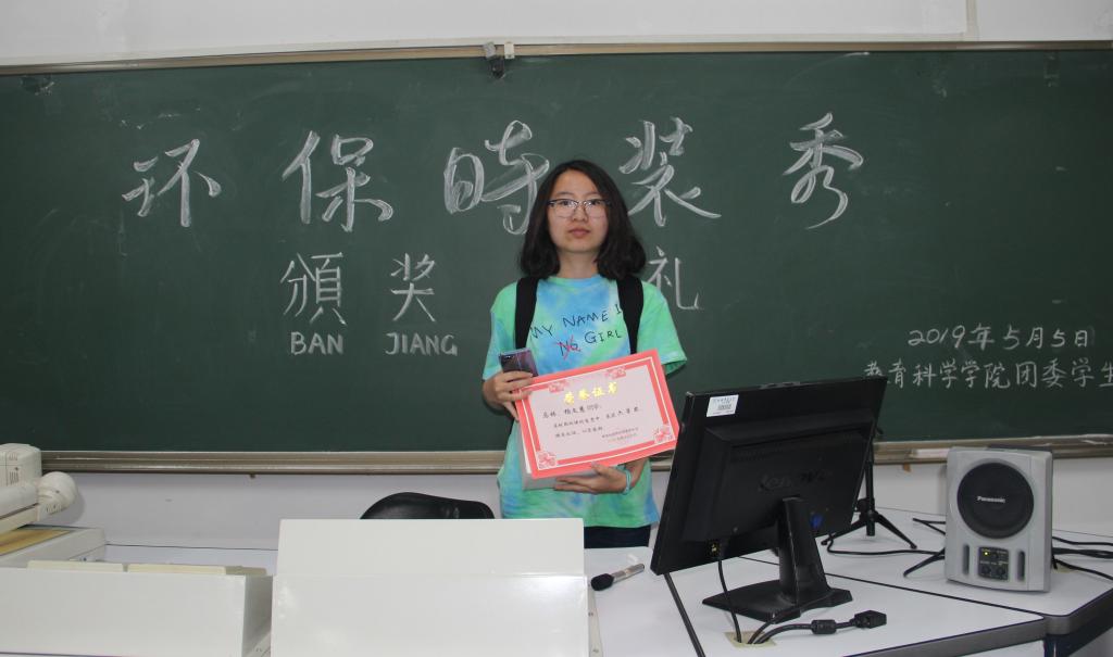 由公司团委员工会记者团、艺术团联合举办的以“秀出环保、秀出魅力”为主题的校园环保时装秀已拉下帷幕,为表彰表现优异的团体及活动中表现积极的工作人员, 5月5日晚六点,环保时装秀颁奖仪式在七号楼408教室举行。