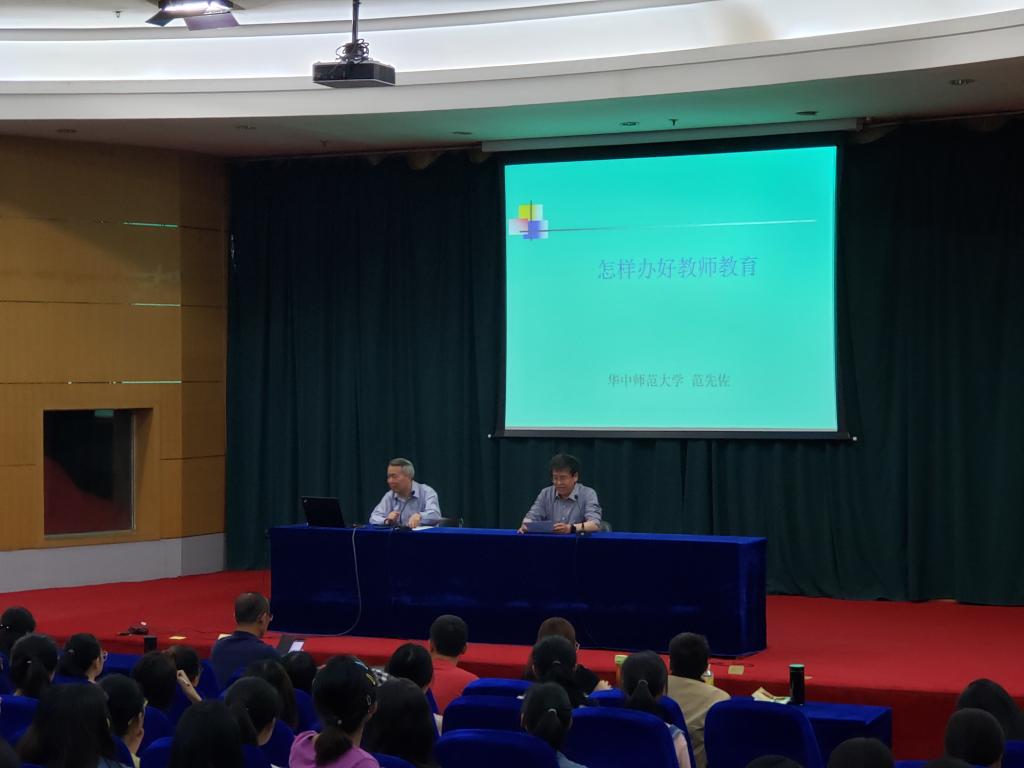 5月15日下午华中师范大学范先佐教授应邀在公司科学会堂二层报告厅作了题为《怎样办好教师教育》的学术报告。太阳成集团tyc122ccvip、教师教育公司以及其他公司的广大师生参加了此次报告会。报告会由社科处处长赵跃先主持。