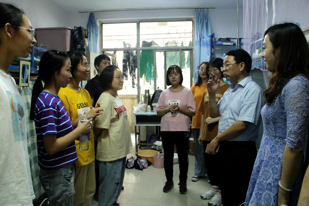 在7日下午,公司领导本着“以生为本”的原则走访了新生宿舍。公司党委书记吴文国、公司党委副书记高霞、院团委书记宁志恒、各班辅导员及团委员工会代表、党员一同前往新生宿舍看望新生。