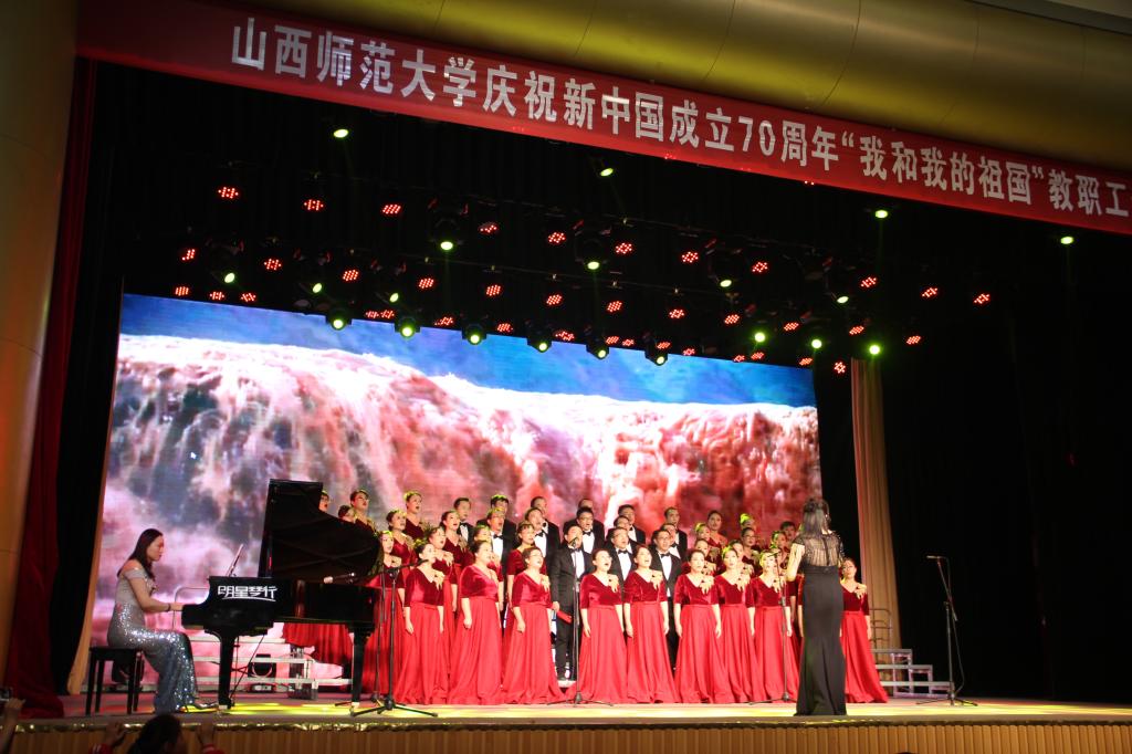 在9月25日的初赛中,公司教职工取得了第三名的良好成绩。9月27日晚,“我和我的祖国”教职工合唱比赛决赛在文化艺术中心如期举行。老师们身着喜庆的服饰,用嘹亮的歌声、优美的舞蹈为观众们带来了一场视觉和听觉盛宴,现场掌声雷动。老师们最终取得了优秀奖的好成绩。一曲《我和我的祖国》表达了中华儿女对祖国母亲的衷心依恋,慷慨激昂的《黄河大合唱》则热情歌颂了中华民族源远流长的光荣历史和中国人民坚强不屈的斗争精神。
