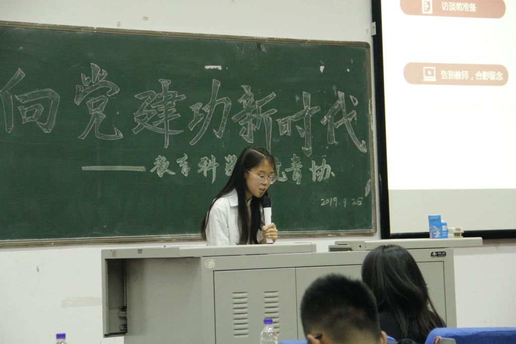 一曲《强军战歌》拉开了大会的序幕,紧接着各队伍依次上场汇报,分享了他们在三下乡期间进行的各项活动与实践感想。“源·梦”实践队寻访当年抗日儿童团团长肖江河先生,追寻红色记忆。聚星源梦实践队则开展了形式多样的社会实践活动,包括看望老人、关爱留守儿童、实地学习种田的基本知识等。生动的讲述使在场的同学感受到了他们在“三下乡”期间的极大收获。最后,青协成员为同学们献上朗诵—《祖国啊,我亲爱的祖国》,本次“三下乡”汇报大会到此结束。