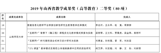 10月28日,山西省教育厅发布了《省教育厅关于2019年度高等教育及省级教学成果获奖名单的公示》,公司李志河教授、王永军老师、赵嵬老师、周娜娜老师的《搭建信息化教研平台探索创新性研究生公司产品改革模式》荣获省级教学成果二等奖。