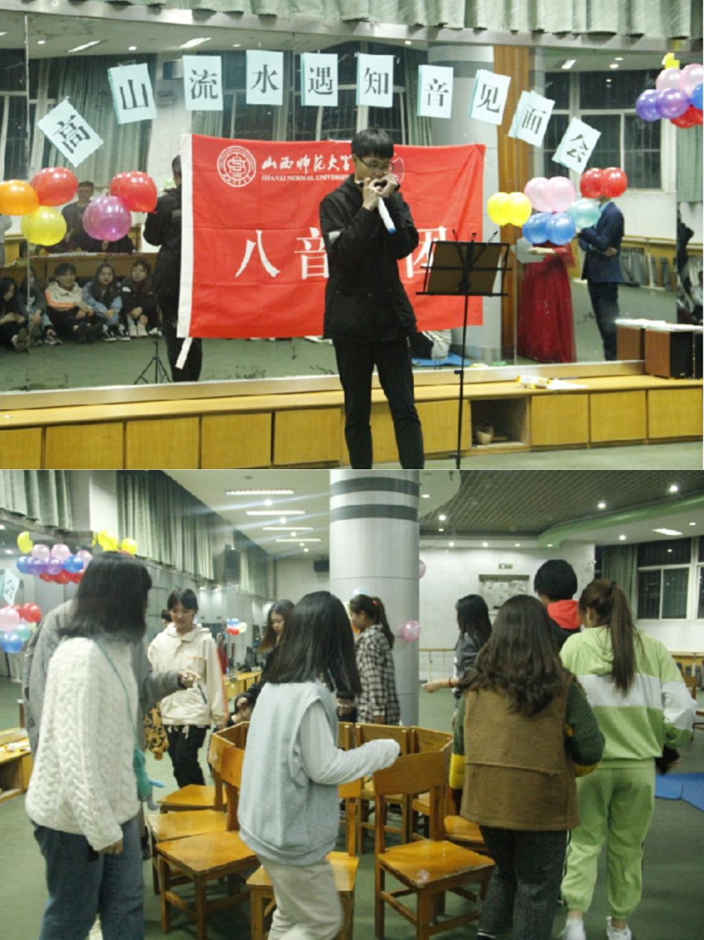 见面会伊始,各社团干事向社员们介绍了社团概况,使同学们对社团有了初步了解。随后进行的才艺展示、小游戏等环节活跃了现场氛围,拉近了社员之间的距离。“心研社”社长杜锦鹏带领社员进行“冥想”,使社员们感受心理健康的相关内容。G-time吉他社社员们的大合唱推动见面会进入了高潮。竹笛独奏《金蛇狂舞》、口琴独奏《狼人琵琶》、二胡独奏《葡萄熟了》等为八音乐团的社员们带来了一场听觉盛宴。