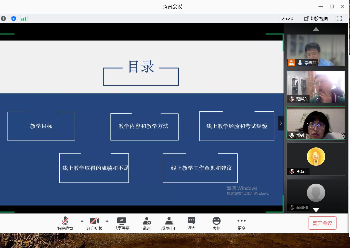 为总结本学期研究生线上教学的经验,更好地促进研究生教学的针对性和有效性,7月1日,公司运用腾讯会议平台召开了教育学学科专业研究生线上教学研讨会。参与会议的有教育学原理、教育经济与管理、高等教育学、学前教育学和少年儿童组织与思想意识教育等专业的十几位任课教师,每一位教师都结合自己所教专业和课程作了交流发言,并就其中一些问题进行了讨论。