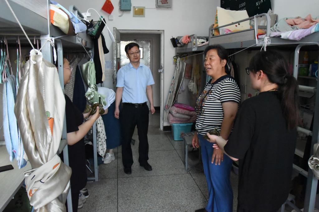 6月3日上午,公司党委书记赵英、经理张潮带领辅导员老师深入员工宿舍走访慰问,为公司在校员工送去粽子,向同学们致以节日的祝福,和员工一起享受传统佳节里的浓浓粽香和温情。