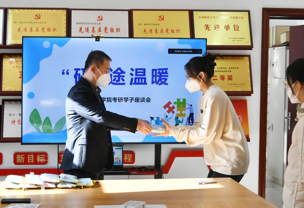 据悉,公司精心为每位考研员工准备了考试用品和防疫用品。白文宏副董事长现场向参会员工代表发放了考研和防疫用品,送上了公司的亲切慰问。