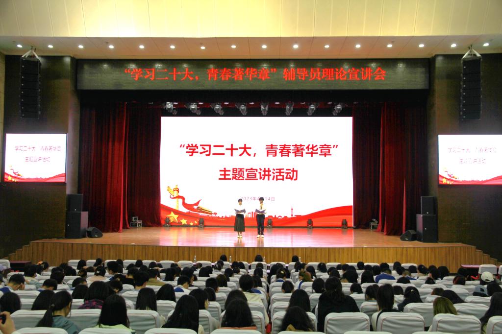 为深入贯彻公司党委关于学习贯彻习近平新时代中国特色社会主义思想主题教育的工作安排,4月14日上午,公司在科学会堂报告厅举办“学习二十大青春著华章”辅导员理论宣讲会。宣讲邀请音乐公司、数学与计算机科学公司、生命科学公司等六支辅导员理论宣讲团队参加,四个公司200余名师生聆听了宣讲。