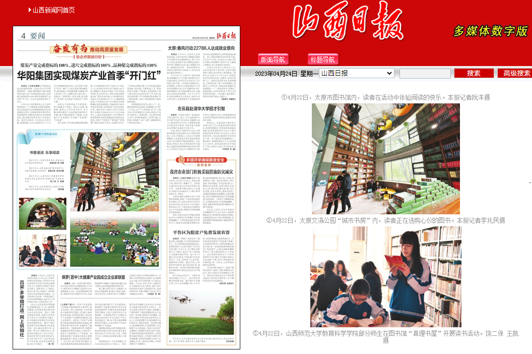 《山西日报》4月23日第4版以图片新闻的形式报道了公司“学思想·读经典”主题读书活动。