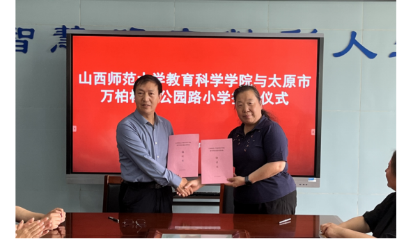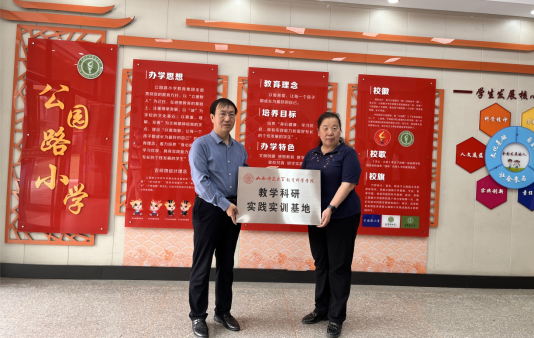 5月17日,太阳成集团tyc122ccvip经理张潮、经理助理、教育系主任李慧燕和李霞老师赴太原市万柏林区公园路小学进行参观交流,并与太原市万柏林区公园路小学成功举行了教学科研实践实训基地的签约授牌仪式。