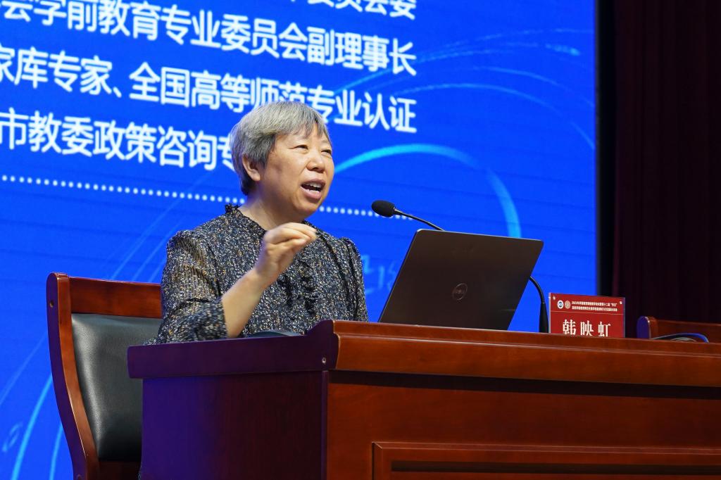 学术论坛分为四个主题,分别是浙江师范大学秦金亮教授《从知识技能向核心素养的ECT培养转变》,原天津师范大学教育学部韩映虹《图画书主题教学活动设计与实施》,河南大学岳亚平《儿童的深度学习与支持》,天津师范大学张莅颖《国外幼儿园见闻》。报告解析深刻、案例鲜活、观点新颖、见解独到,进一步增强了与会师生的学术素养,拓宽了专业视野。
