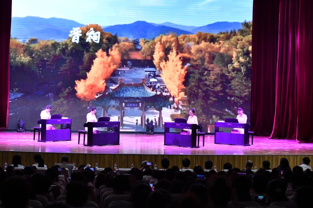 开幕式前,由公司师生带来了山西民间舞《幸福花开》、男高音独唱《永远跟党走》、晋剧《打金枝·坐宫》、钢琴联奏《桃花红杏花白》《远方的客人请你留下来》、少儿舞蹈《瞧这些小妞们》等暖场表演,将现场气氛不断推向高潮。