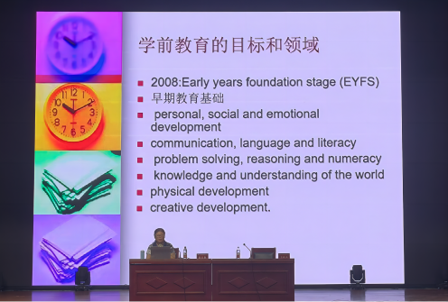 在报告中,张莅颖教授介绍了英、美、日三国幼儿园的特点,结合其在各国幼儿园的所见所闻,从学前教育的目标和现实入手,以幼儿园的一日生活安排为切入点,阐述了学前教育课程的设计以及活动区的布置理念,并在此基础上分析了三国幼儿园教育的不同关注领域。在报告的最后,张教授勉励同学们,要怀有国际视野,注重教研反思,在对多国学前教育模式进行比较研究的基础上,发掘我国学前教育的特色模式。