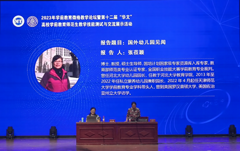 2023年7月2日下午,天津师范大学学前教育专业带头人张莅颖教授应邀在科学会堂做了题为《国外幼儿园见闻》的专题报告。报告由张迎春教授主持,“华文”杯所有到会选手、带队老师及太阳成集团tyc122ccvip全体师生聆听了报告。