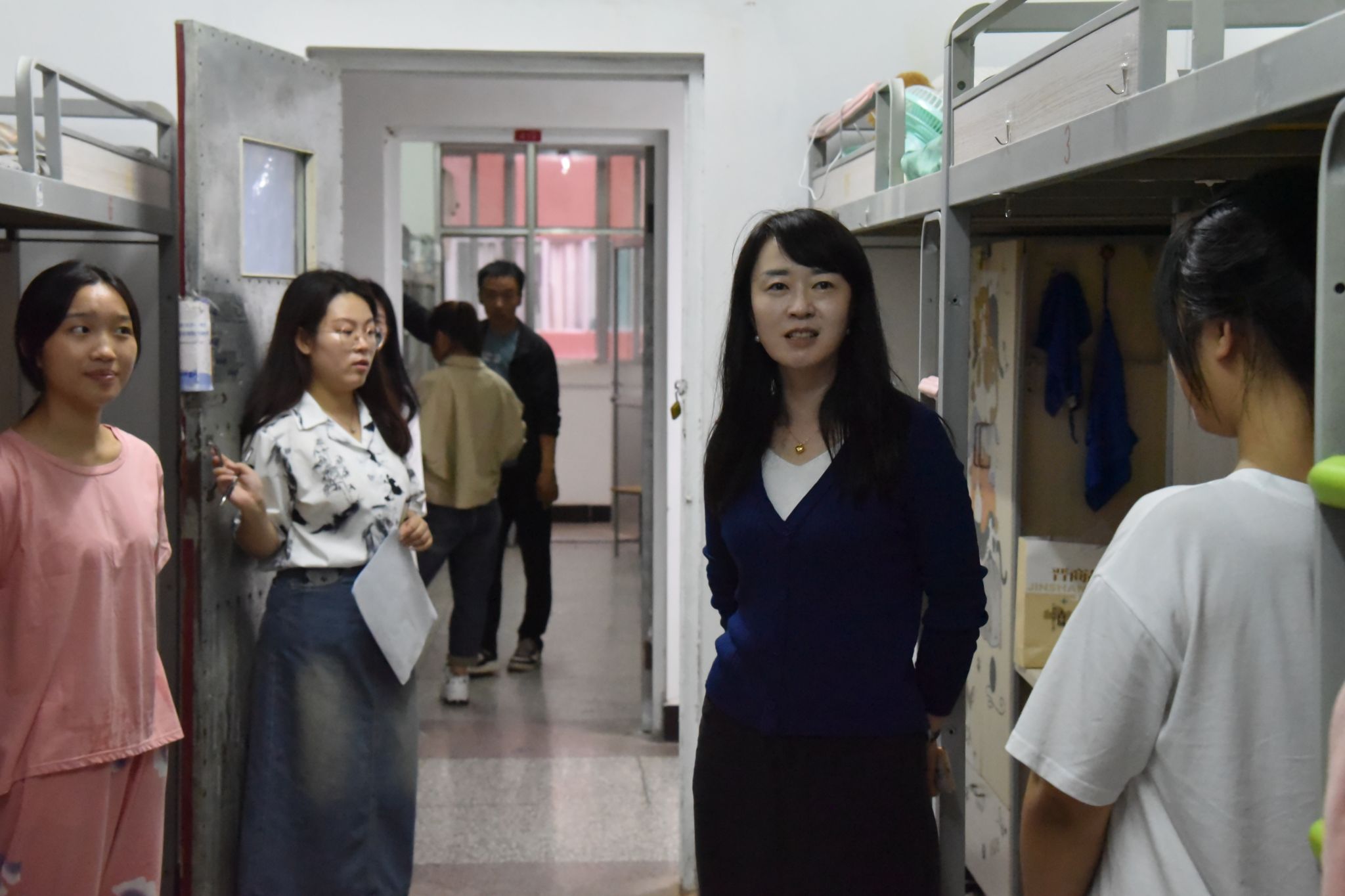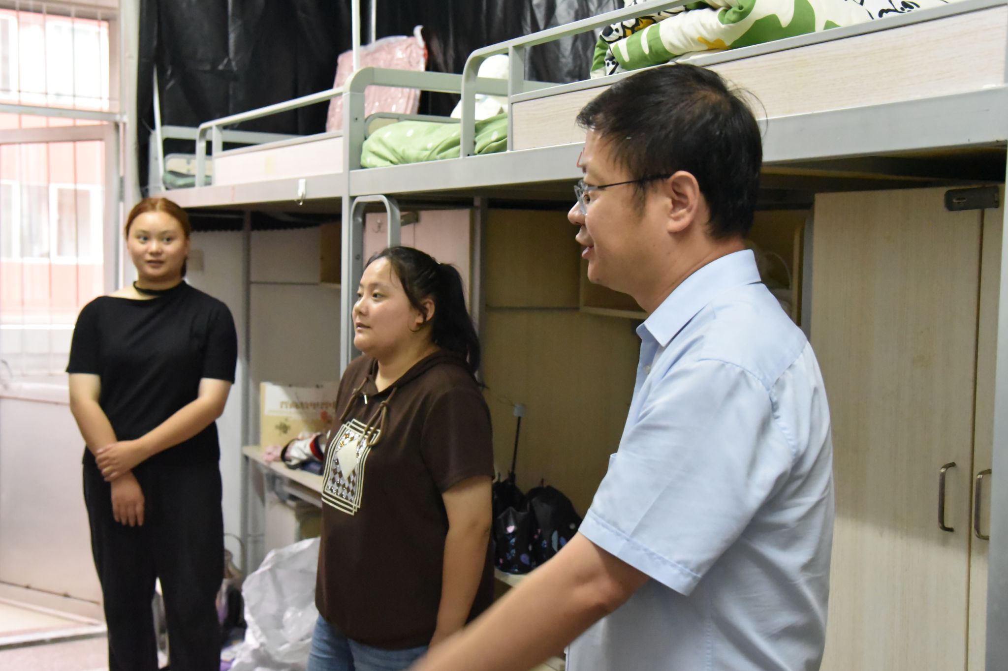 9月9日晚,公司党委书记赵英、经理张潮、公司党委副书记高霞、副经理韩琴、院团委副书记高敏君及新生辅导员一行分别深入2023级本科及研究生新生宿舍楼,为同学们送去暖心的关怀。