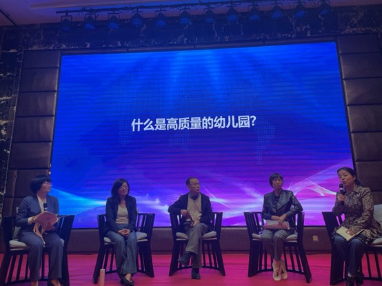 在最后的圆桌论坛中,步社民教授、胡华园长、林凤鸣副园长、介休市第九幼儿园王辉园长、李高峰副教授就“什么是高质量的幼儿园?”“参照《评估指南》,幼儿园如何对保育教育质量进行自我评估?”对本次论坛的主题进行了回溯与再思考,最终明确高质量的幼儿园就是要落实到儿童身上,就是要以游戏为基本活动促进儿童主动学习和全面发展。同时,也为幼儿园如何进行自我评估带了新的观点和启示。