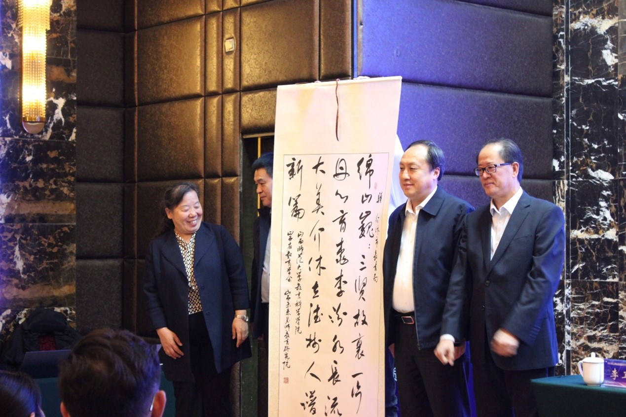 开幕式中,陈晓力秘书长与张潮经理为介休市教育局赠送了一幅墨宝,表达了主办方对介休教育局承办本次论坛的诚挚祝福与感谢!