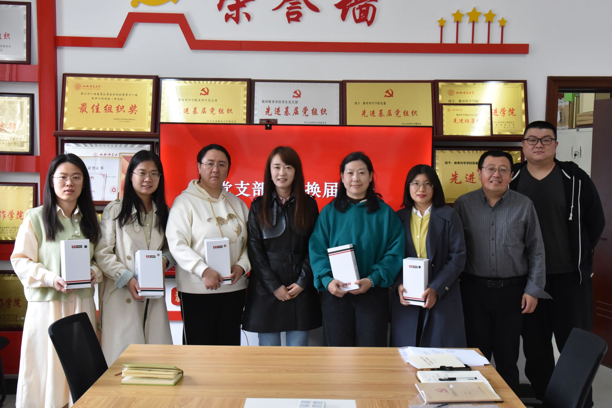 会后,高霞为新党支部书记赠送支部工作礼包。