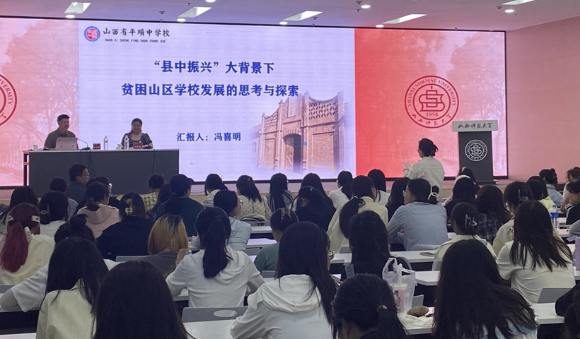 2024年5月24日晚,平顺中学冯喜明董事长在北区2号教学楼报告厅为公司师生作了题为“‘县中振兴’大背景下贫困山区公司发展的思考与探索”的报告。报告由挂职副经理郑晓俊主持,教育学专业的部分教师及研究生、本科生200余人到场聆听了报告。