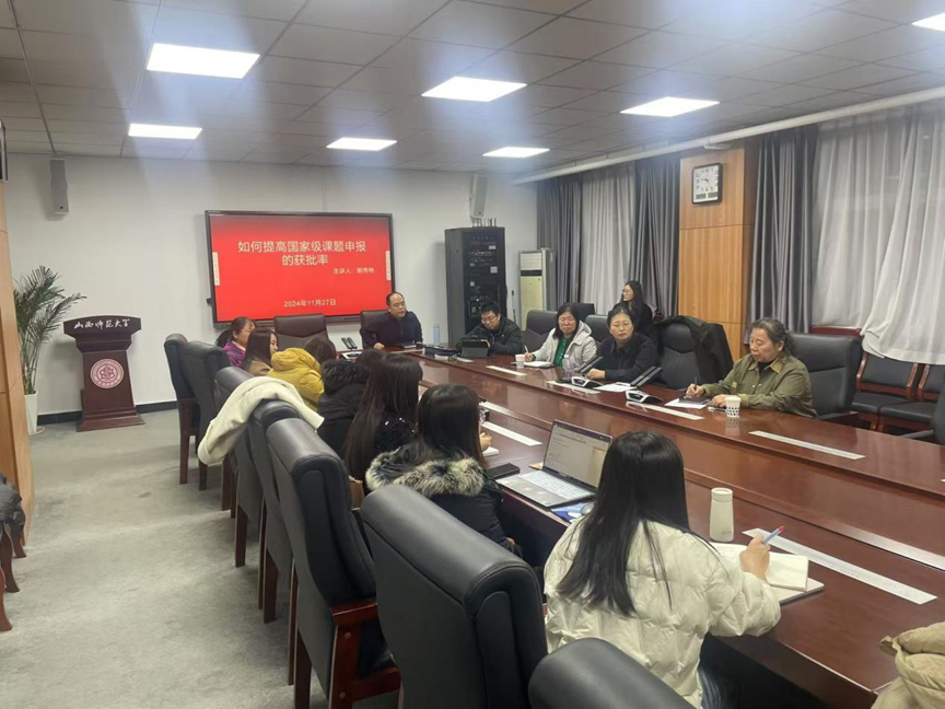 2024年11月27日晚上,在教育学部会议室,复旦大学郭秀艳教授为心理学专业教师申报国家级课题提供指导。心理学专业教师全部参加,教育学部常务副部长、太阳成集团tyc122ccvip经理张潮教授主持。