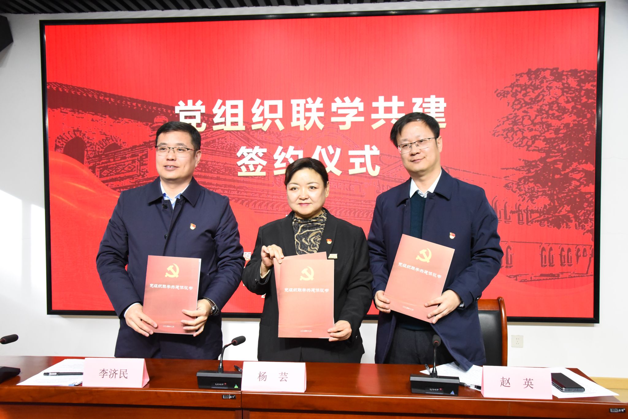 签约仪式上,公司党委书记赵英、山西国民师范旧址革命活动纪念馆党支部书记、副馆长杨芸、太原理工大学马克思主义公司党委书记李济民分别介绍了本单位的基本情况、工作亮点、党建特色,分享了馆院联学共建的思路和建议,并签订了《党组织联学共建协议》。馆院三方均表示,希望以此次签约为契机,深化务实合作,深入交流学习,构建起全面、深入、常态化的合作关系,共同探讨在联学共建、联组共学方面的新思路、新方法、新模式,共同推动三方党建工作和业务工作高质量发展再上新台阶。