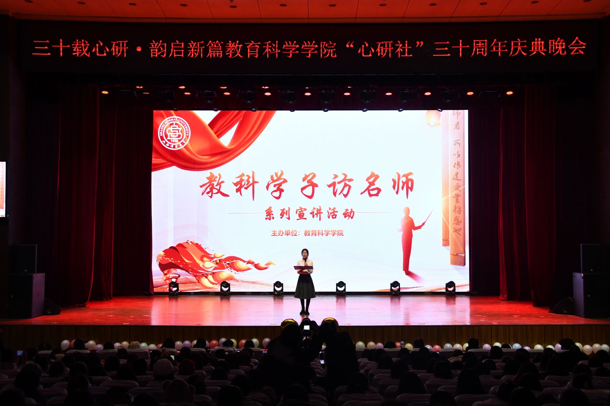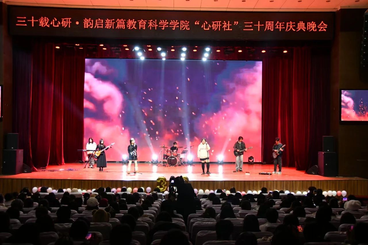 主题活动以总结、反思、改进为主题,以讲、述、评为主线,辅之以精彩的文艺演出,全方位、多角度展示“心研社”建设成果,总结建设经验,思考建设方向。主题活动在活力四射的舞蹈《Heart》中开场。进入展示环节,心研社成员以演说的方式深情回顾了心研社成立三十年来走过的风雨历程;心理情景剧《面具之下》以细腻的表演刻画心灵的困顿,引发大家的情感共鸣;舞蹈《一曲惊鸿》刚柔并进,尽显古风舞蹈的独特魅力;“名师寻访”优秀宣讲员声情并茂的讲述了自己与老师的故事,带领大家一起领略名师风采,感受榜样力量;乐队歌曲《我的未来式》和歌舞《相亲相爱》激情澎湃,点燃了晚会现场。