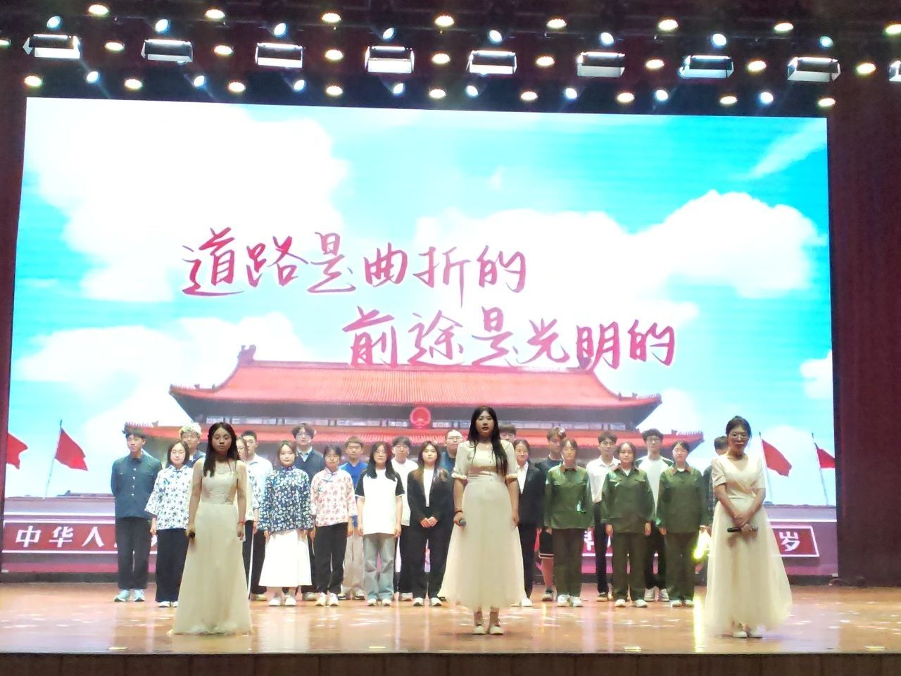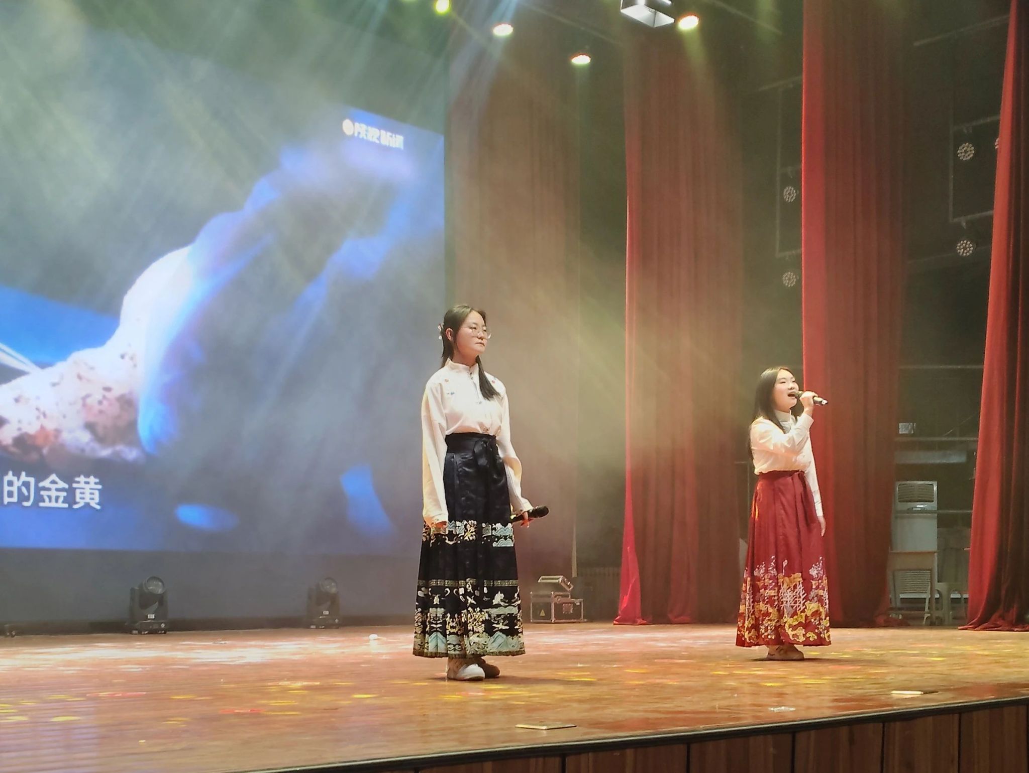 文艺汇演以精心设计的三个篇章为主线,融合诗朗诵、歌曲、舞蹈、情景剧、器乐合奏等形式,串联起历史与当下,为观众带来了一场沉浸式的视听体验。在第一篇章“革命曙光”中,诗朗诵《五四的火炬》、改编歌曲《错位时空》、合唱《夜空中最亮的星》、舞蹈《珊瑚颂》,引领师生一起追溯五四精神,重温红色革命历程。在第二篇章“砥砺征程”中,乐器合奏《万疆》、情景剧《钢火长明》、诗朗诵《青春中国》、歌曲《一路生花》传递出奋斗征程中不畏艰难、勇往直前的坚定信念。在第三篇章“青春扬帆”中,诗朗诵《何以华夏,何以中国》、歌曲《我的未来不是梦》《奔跑的青春》、舞蹈串烧《闪跃未来》,抒发了青年学子对青春的礼赞和对未来的憧憬。