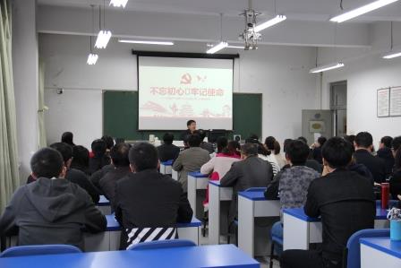 赵跃先教授以“不忘初心、牢记使命”为题,紧紧围绕习近平新时代中国特色社会主义思想这个主线,从党的十九大的鲜明主题,习近平新时代中国特色社会主义思想的丰富内涵,党的十八大以来党和国家事业发生的历史性变革,中国特色社会主义进入新时代的重大意义,我国社会主要矛盾变化的深远影响,“两个一百年”奋斗目标,坚定不移全面从严治党的重大部署等七个方面对党的十九大报告进行了全面准确、系统深入的梳理解读。报告思路清晰、内容详实、重点突出、语言生动,对公司师生深刻领会十九大精神起到了很好的引导作用。