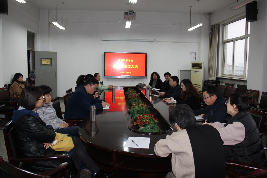 11月21日下午,公司在07509召开全体教职工大会。公司党委书记吴文国、公司党委副书记高霞、副经理李志河以及全体在校教职工参加了大会。会议由吴文国主持。
